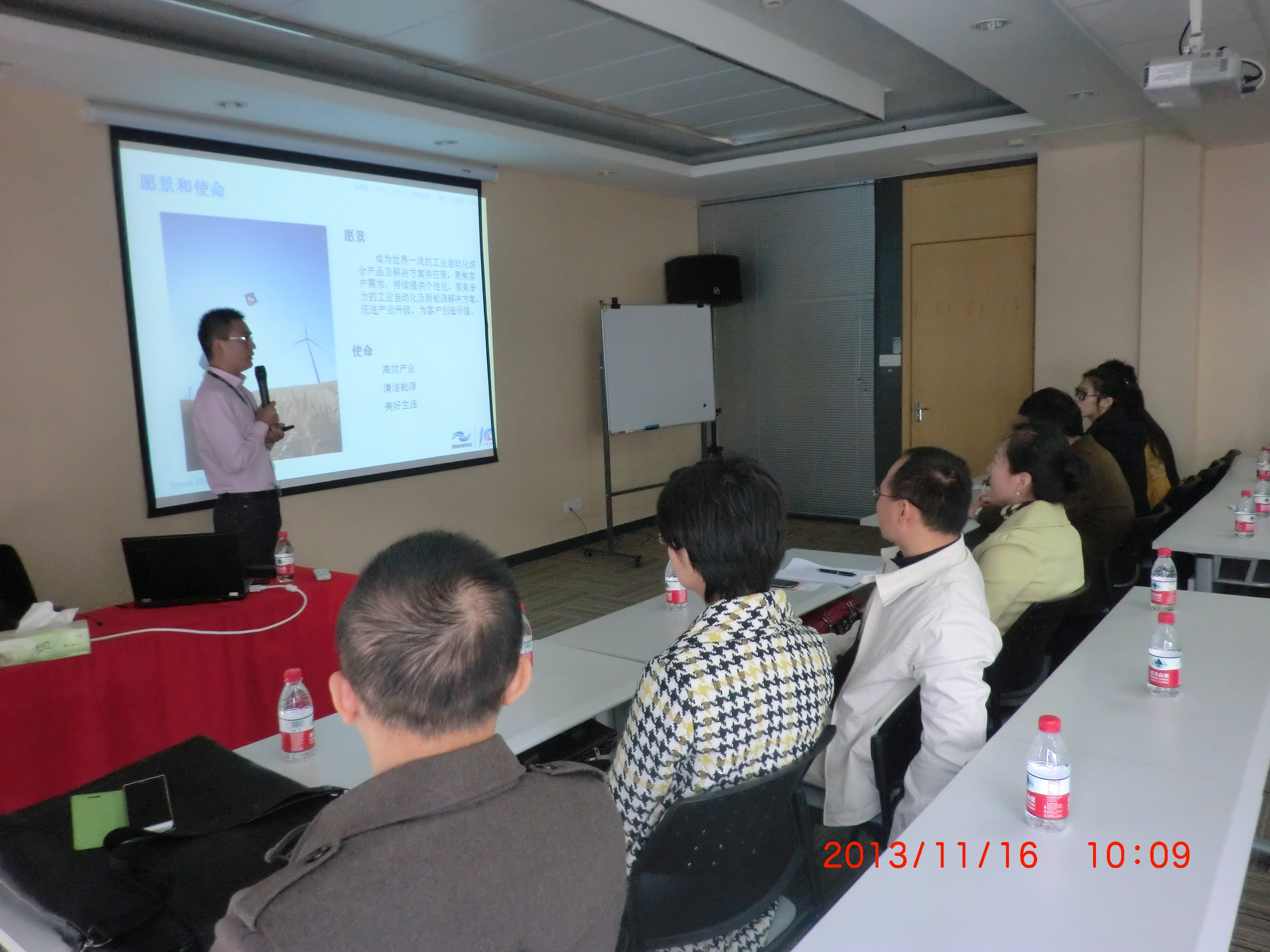 学习团队于当日上午10点到达苏州汇川,由就职于汇川市场部的我院11届毕业生陈达对汇川公司做详细介绍,该公司是主要以工业自动化控制化软件、硬件及其产品和系统集成的技术开发、生产和销售为一体的高科技公司。2011年1月荣获福布斯排行榜中国最具潜力中小企业第18名,2012年1月荣获福布斯排行榜中国最具潜力上市企业第1名。同时,该公司于2011年在我院设立了“汇川奖学金”,通过这项捐赠计划,我院每年都有优秀学生、中青年优秀教师和需要帮助的学生通过申请获得奖励和资助。