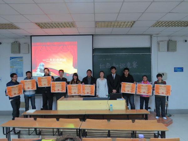 由betway西汉姆联2013级团总支主办的“一二・九”红色知识竞赛于11月29日在将军路校区6101教室顺利举行。本次活动旨在通过知识竞赛的形式增强同学们对的红色革命知识的了解,更好地激发同学们学习红色历史知识的热情,号召大家不忘历史,学习过去,不断进步。