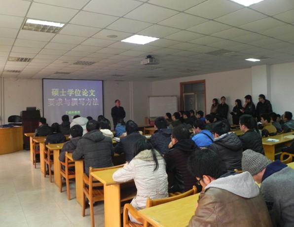 研究生教务员臧寿鸿老师首先向同学们传达了研究生毕业论文相关日程安排和注意事项,包括论文检测送审(万方、CNKI)、发表要求等等。接着,于盛林教授就毕业论文撰写的具体细节进行了深入的指导。从论文格式的基本要求,到论文内容的创新内涵;从开题绪论的写作思路,到公式原理的深入拓展,于教授都进行了细致周到的讲解,于教授深入浅出、切中要害的讲解激发了同学们认真思考。作为具有多年审查论文经验的老专家,于教授对于审核过程中的处理细节稔熟于胸。最后,于教授和同学们展开深入的交流,为同学们提出的问题一一解答。听完讲座,同学们以热烈的掌声感谢于盛林教授和臧寿鸿老师为大家做的精彩报告,纷纷表示会以严谨的态度对待研究工作,以实事求是的心态严格撰写论文。