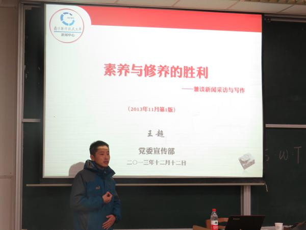 12月12日,betway西汉姆联第十三期S.W.T.工作坊之新闻采访与写作在将军路校区举行。本期工作坊由南航报编辑部主任王超担任主讲,院团委书记季娟作为嘉宾出席了本次活动。参加本期工作坊的还有2012、2013级的学生骨干。 在对南航新闻中心进行简要介绍后,王超从政治家办报、历史家办报、新闻家办报3个话题引入对新闻工作价值观的探讨,强调好的新闻采写缘于正确的新闻价值观的确立,并简要阐述了“什么是新闻”“新闻基本特征”等基础新闻理论观点。在新闻采访业务指导环节,他指出,“七分跑,三分写”是新闻记者的重要素养,并引用20世纪初著名记者黄远生的“四能说”,阐述新闻记者应着重培养的四种新闻采写技能。针对同学们的具体采写需求,王超重点讲解了“消息”的写作要领,并以丰富的实例向同学们做了详细阐述。 在互动环节中,王超对活动现场同学提供的近期3篇新闻稿进行了点评和修改,并对同学提出的问题进行了一一解答。 培训最后,王超与大家共勉道:“我们都是南航的新闻工作者,讲述南航‘好’故事,传播南航‘好’声音是我们共同努力的方向”。