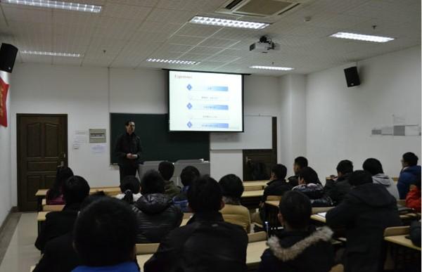 尹建华老师解释了主题的内涵,“激”代表刺激的人生体验并以此来激励大家;“发”是希望大家发奋、勤劳;“传”即传递自强不息的科研精神;“导”是引导同学们逐步走向成功,大家听后报以热烈掌声,讲座随即在掌声中正式开始。