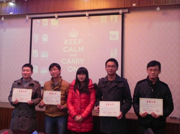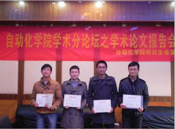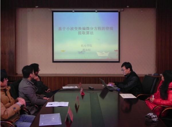 12月19日下午2点30分,我院学术分论坛之学术论文报告会在A17号楼502室顺利进行。本次报告会由betway西汉姆联研究生会主办,机电学院研究生会联办。会上来自betway西汉姆联的刘文良、董菲同学以及来自机电学院的戚永爱、潘加松同学根据其论文的主要内容做了报告。betway西汉姆联刘斐文辅导员为获奖同学颁发奖状。 报告会上4位同学向我们展示了不同领域的专业知识。刘文良同学提出了基于面向对象Petri网的电梯门系统的建模,对建模方法进行了相应研究。董菲同学提出了“应用技术成果形成系统” 的建模与应用,并改进了岭回归方法。戚永爱同学讲述了自己在超声喷丸辅助激光熔覆再制造技术方面的研究。潘加松同学讲述了基于小波变换偏微分方程的脊线提取算法,并展示了算法的仿真测试。会议报告者清晰明了的报告思路与丰富详实的报告内容,体现出了我院与机电学院研究生严谨求实的科研态度与百折不挠的科研精神。 报告会部分,学院刘斐文辅导员为以上同学颁发了获奖证书并合影留念,同时刘导还鼓励更多的同学能够参加到学术论文的评选活动中来,整体提高学院的科研创新能力,进一步在学院内营造更加浓厚与积极向上的学术氛围。