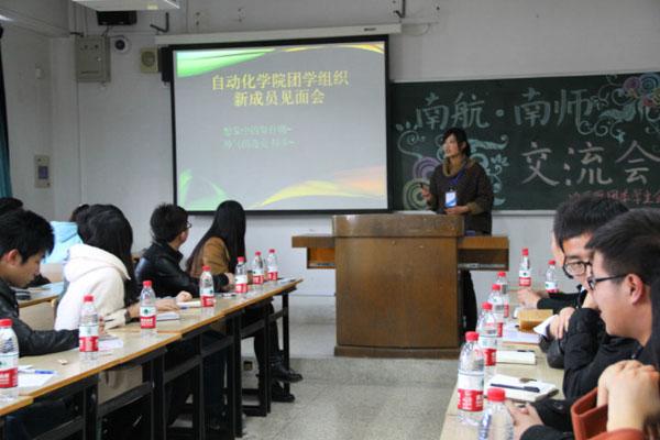 本次联谊活动主题为“摇手相望,携手共进”,活动分为工作交流会和茶话会两个环节。工作交流会上,两院团学组织的代表们分别介绍了各组织部门的部门文化、精品活动、发展方向等。会后,双方相应部门的成员进行了更深层次的交流,碰撞出了思维的火花。双方从对方学到了很多工作经验及有效措施,从相似的活动中找到了不同的工作方式和形式,从不同的活动中看到了学生工作的更多可能性。茶话会上南师大电自院团委学生会表演了精彩纷呈的节目,歌舞、舞台剧、小游戏,层出不穷的创意赢得台下笑声掌声不断。