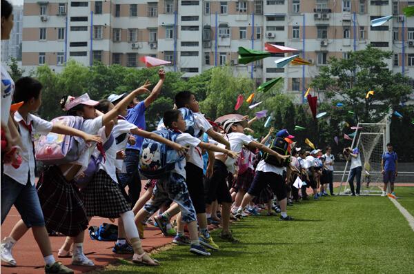 最后一个环节――放飞纸飞机,也呼应本次活动“放飞梦想,快乐起航”的主题。红领巾们把自己的心愿写在五颜六色的彩纸上,折成纸飞机进行比赛,飞机飞的最远的小朋友将获得飞机模型作为奖励。孩子们的心愿各有不同,有的写的是当一名飞行员,有的是要当一名画家,还有的想要将来能拥有一架属于自己的飞机。他们还给自己的飞机命名:旋风、玄冰、幽灵・鹰鸡……这一架架承载了孩子们希望的纸飞机在操场上盘旋、飞翔,冲向天空。