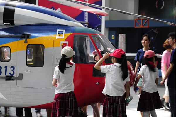 除了停在航空航天馆里庞大的真飞机让孩子们兴奋不已,精致小巧的航模也对孩子们有着很强的吸引力。当操作员启动飞机的马达,本来喧闹的人群顿时安静了下来。孩子们都睁大了眼睛盯着飞机,“轰”的一声航模上天,在天上盘旋翻跟头,孩子们一阵欢呼。吴桐小朋友说:“这个航模真好玩,可以带人么?我也想要一架这样的飞机。”遥控航模的陈俊宇说:“孩子们对飞机充满了好奇和兴趣,有几个甚至对航空航天这个领域非常了解,这大大出乎我的意料。看到小朋友这么开心,我也觉得一个早上的调整、准备没有白费。”