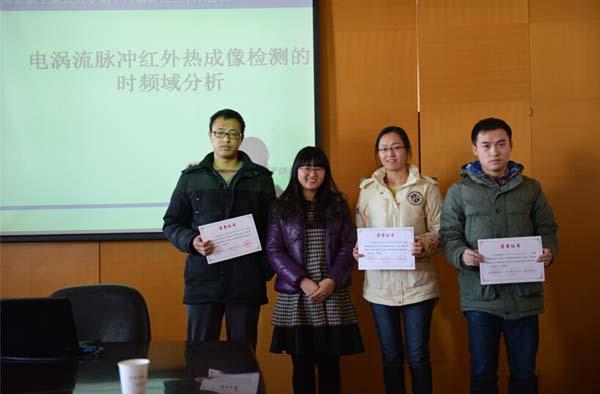报告会上同学们向我们展示了不同领域的专业知识。孔超同学展示的是一种微惯性姿态系统误差快速标定方法,而焦婷同学也分享了电涡流脉冲红外热成像检测的时频域分析。报告者清晰明了的报告思路与丰富详实的报告内容,体现出了我院研究生严谨求实的科研态度与百折不挠的科研精神。
