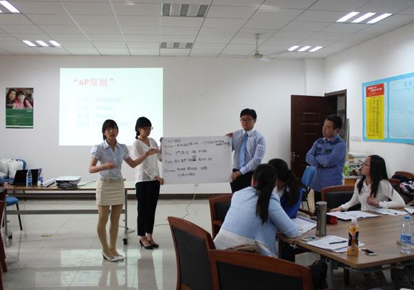 短暂的休息后,同学们最期待的“案例分析”环节开始了。大家被分成六个小组,就“小笼包”案例进行激烈的讨论,并抽取2个小组上台汇报,志愿者们也相应地观察本组学生的表达能力、应变能力、领导能力等等,并在讨论结束后给出相应的评价与指导。
