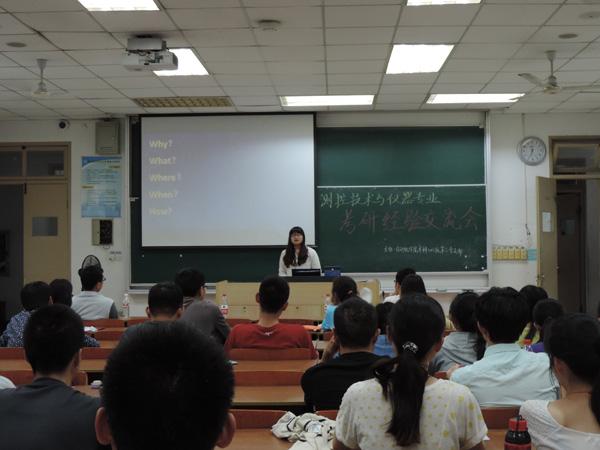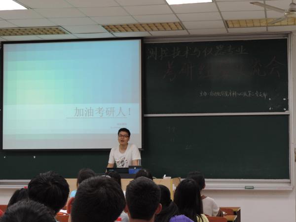 4月28日晚6:30,betway西汉姆联2012级本科生第二党支部在将军路校区6102教室举办了测控技术与仪器专业考研经验交流会。betway西汉姆联测试工程系副主任、博士生导师徐贵力教授主讲考研政策解读,2011级成功考研学生顾舒娅、仇三铭作考研经验交流, 2012级测控技术与仪器专业有考研意向的学生参加了此次交流会。