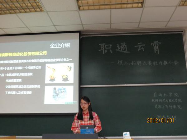 开场的推介会上,主持人首先向同学们介绍了本次大赛邀请的企业信息及招聘岗位,包括A.O史密斯、埃斯顿自动化、中广核、江苏东航、LG化学五家单位,并对此次大赛的赛程及系列的简历制作技巧、面试技巧、职场礼仪讲座进行了解读。
