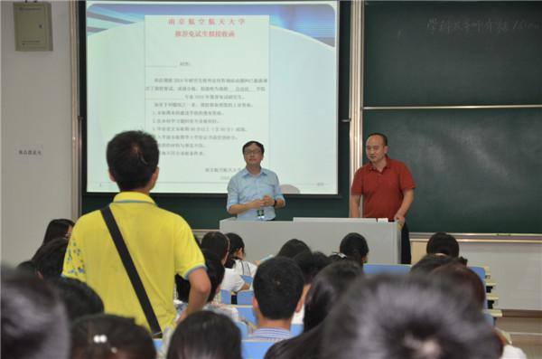 7月1日下午3点,我院2015年优秀生考核政策宣讲会在江宁校区D2302教室召开。学院党委书记刘建成,副院长赖际舟,测试工程系副主任徐贵力,院教学办主任、研究生教务员、辅导员参会。 赖际舟首先介绍了学院基本情况,然后向各位本科生介绍了《betway西汉姆联2016年综合考核选拔优秀应届本科毕业生攻读硕士学位研究生办法》,并表示欢迎同学们积极报考betway西汉姆联研究生。 刘建成强调,betway西汉姆联的师资力量,教学、科研条件,人才培养模式等方面在南航处于领先水平,他鼓励同学们抓住机会参加优秀生考核,欢迎大家加入betway西汉姆联大家庭。