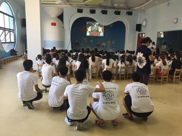 本次活动旨在让小朋友了解、感知并铭记历史,缅怀先烈,从小培养爱国、报国情怀,珍惜和平生活。活动现场,党员们通过表演抗日情景剧、演唱红色革命歌曲、陪同小朋友一起观看抗战动画片等活动,向现场的488名孩子们介绍抗战的历史,引导幼儿珍惜如今的幸福生活。小朋友们都非常认真,当表演《歌唱祖国》时,现场的孩子们自发地打着节拍,和南航的大哥哥大姐姐一同演唱。