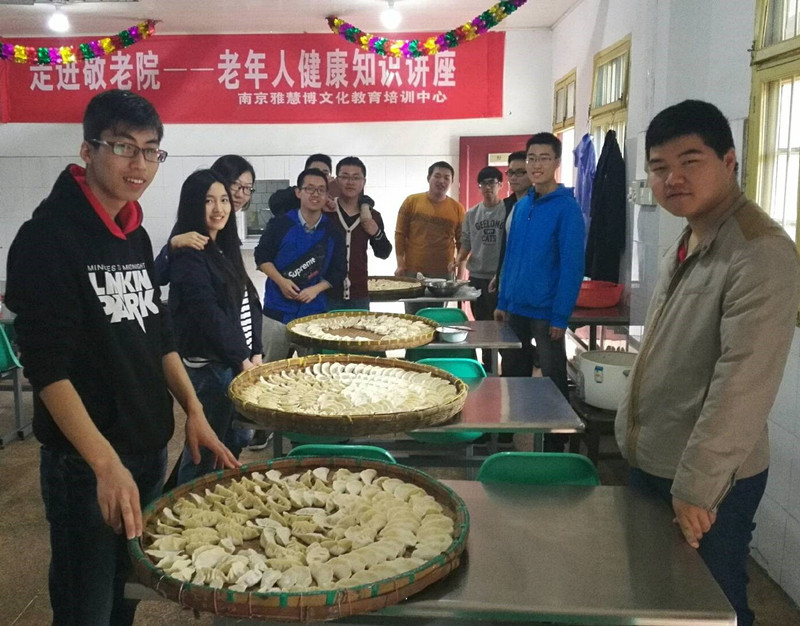 聊了一会儿,食堂里的阿姨就喊同学们过去帮忙包饺子。虽然组里大部分都是男孩子,看着大大咧咧,但是包的饺子十分的细致美观,受到了方院长的称赞,另在场的女生都自叹不如。欢笑声中,饺子全部包完了,几筐饺子,凝聚了同学们的心血,也展示了同学们各自家乡的特色。虽然没能亲眼看到老人们吃上自己包的饺子有些遗憾,但是看着大家一起动手包出来的水饺同学们内心还是充满了成就感。