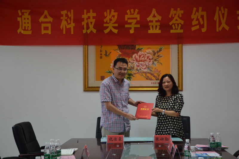 最后,通合电子科技股份有限公司副总经理祝佳霖和我校发展联络部副部长张钟勤代表双方进行签约。根据协议,石家庄通合电子科技股份有限公司向bw必威西汉姆联教育发展基金会捐赠15万元,设立通合科技奖学金,用于奖励betway西汉姆联电气工程学科优秀的全日制在校研究生,从2016年起分三年颁发。张钟勤副部长代表基金会向公司授予了捐赠证书。