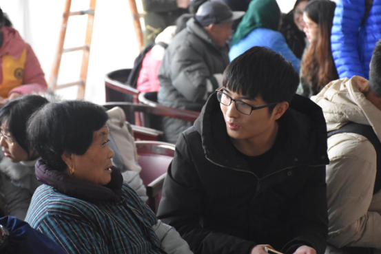 尽管老人们的家乡口音很难听懂,但每位同学仍然用他们的耐心半理解半猜测,努力和老人交流。虽然素不相识,但看到老人家的笑脸大家内心很是温暖。
