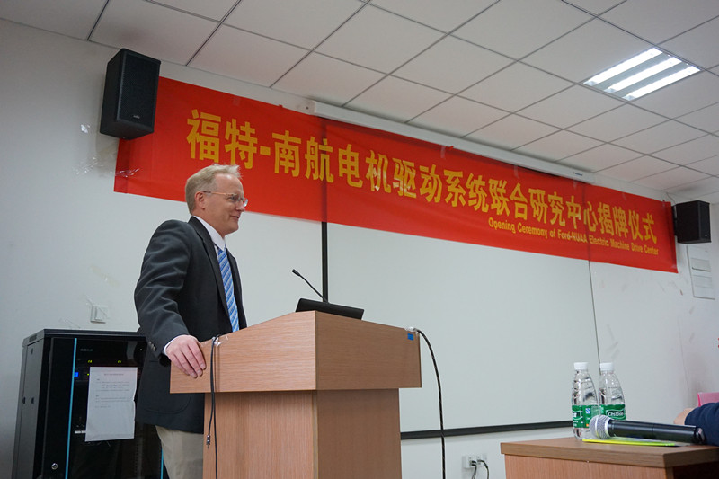 揭牌仪式由国际交流合作处副处长(主持工作)赖际舟教授主持并致辞,感谢福特公司与南航长期以来紧密合作,以及对于建立福特-南航电机驱动系统联合研发中心的大力支持。betway西汉姆联院长姜斌教授致辞,祝贺电机驱动系统联合研究中心成立,并全面介绍了学院情况,表示将尽力支持研发中心发展。福特公司电机驱动系统部主管Michael Degner博士和福特公司亚太区研究与先进工程总监韩维建博士分别致辞,对南航电气工程的研究水平给予高度评价,并对未来福特-南航电机驱动系统联合研发中心的合作充满期待。