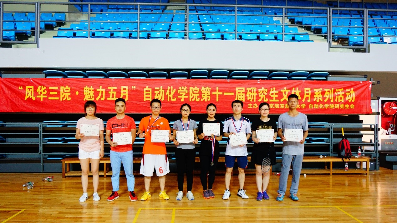 一天的奋勇角逐之后,最终由博士生杨少华摘取男子单打比赛的桂冠,研究生二年级的三位同学紧随其后,左超获得了亚军,王佳辉与张榕并列季军。获得女子单打比赛冠军的选手是来自研究生二年级的王双双同学,她以2:0的比分击败了亚军戴薇同学,并列季军位置的是赵星星与刘雅竹同学。获得混合双打比赛冠军的选手是左超、赵星星组合,亚军为徐浩、张苗组合,并列季军位置的是傅子锐、叶薇薇组合与高欢、张妍组合。