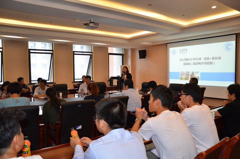 9月29日下午,2017级0317801班班会与家长会在betway西汉姆联1号楼403会议室顺利召开。自动化(航空电子与控制)专业是bw必威西汉姆联为了培养具有国际化视野并掌握航空电子与控制技术的高素质人才,与英国伦敦城市大学合作引进的联合办学项目。学生在betway西汉姆联自动化(航空电子与控制)专业学习两年后在第三、四年赴伦敦城市大学学习,完成所要求的全部课程后将获得中英双学士学位。为了让学生和家长了解项目详细情况,知晓具体政策,学院特意组织学生和家长共同参加会议,教务处副处长王敬东、betway西汉姆联副院长王晓琳、学院党委副书记张跃,自动控制系副主任张绍杰、教师代表刘海春老师、国教院辅导员张静、学院教务员郑成、学院辅导员汤呈懿等人出席了本次会议,本次班会与家长会由班主任齐瑞云教授主持。