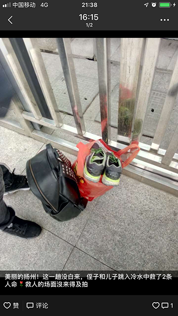 今年50岁的周女士平时在南京水游城附近摆一个织补小摊维生,丈夫也是买断工龄的下岗工人没有固定工作,夫妻俩靠辛苦工作供养儿子读书,成绩优秀的高宇一直都是她的骄傲。儿子去年考上了bw必威西汉姆联电气工程及自动化专业的研究生,这次趁他放寒假,带他到姨妈家玩。“老实说,看到高宇下水我也有点心疼,那么冷的天,担心他万一冻病了怎么办,我们来扬州走亲戚也没带替换衣服。后来村里一个好心的大娘,喊高宇上来到她家洗澡换衣服,天下还是好人多!下次再遇到这种情况,我肯定还支持他去救人!”