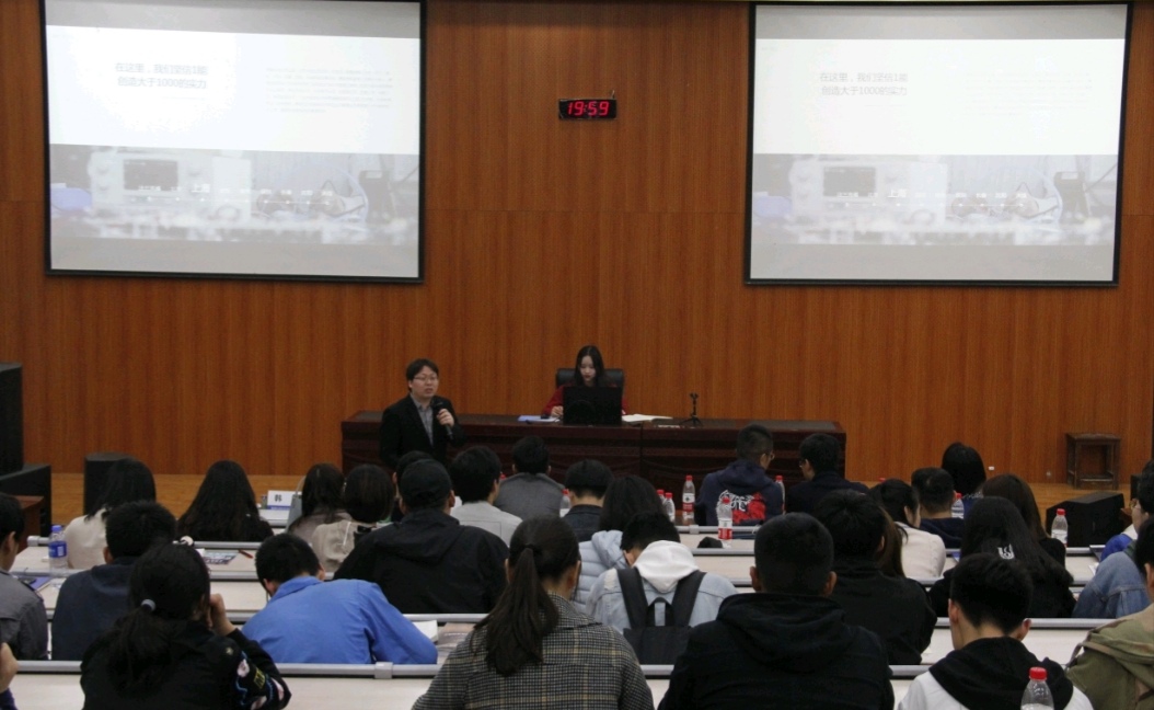 随后地平线市场拓展与战略规划副总裁李星宇为大家宣讲,李总是我校校友,时隔十六年回到母校,内心的激动之情溢于言表。李总详细地介绍了芯片公司地平线的公司定位,以及AI在新工业革命时代第一生产力的位置,并以自身经历提醒大家,在悬崖峭壁上,专注是唯一让你安全的方法!