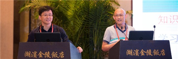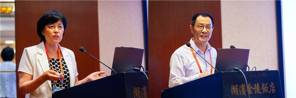 中国科学院上海系统生物学研究所陈洛南研究员(左)和中南大学王建新教授(右)作大会主题报告