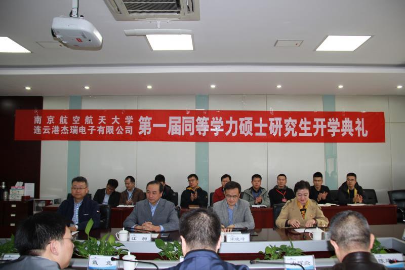 在宣布开班典礼开始后,全体起立奏国歌。颜耀总经理首先致辞,他首先感谢南航和716所对此次合作办学的支持,合作办学不仅仅是为企业培养人才,更重要的是能不断加深彼此的了解,不断拓宽合作面,他希望新入学的学生要珍惜学校送教上门的机会,努力学习基础知识,了解最新的研究动向,在工作中不断长本领,让自己成才,为企业成功助力。他还向在座的老师们介绍了杰瑞电子公司的发展和未来规划,他强调公司的强大一定与人才密不可分,公司对人才培养给予了高度的重视和大力的支持,学员们要不忘初心,认真学习,科技报国,学到新知识新技能,在新时代有新作为。