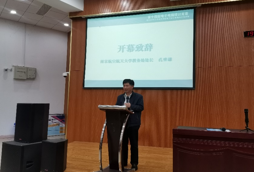 会议初始,主持人姚振一为同学们介绍了电赛的整体情况,鼓励着一代代学子实现梦想,同时也为我校培育出一批活跃于各级比赛中的优秀人才。随后,孔谦垂处长致开幕词,他向同学们介绍了电赛十四年来规模不断壮大、体系不断完善的历程,为参赛同学们搭建了一个勇于实践和敢于创造的舞台。在建国70周年之际,作为南航学子,应该倍感骄傲和自豪。希望参赛同学以此次大赛为契机,激发创新灵感,发扬工匠精神,勇于改革创新,脚踏实地奋斗,为中华民族伟大复兴贡献青春力量!