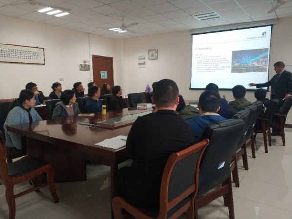 参会我校师生针对当前控制、导航定位领域的新发展的各个领域与Andrew. H. Kemp教授深入探讨和交流。Kemp教授也针对大家三兴趣的问题予以详细解答。会后Andrew. H. Kemp教授还和部分与会师生合影留念。