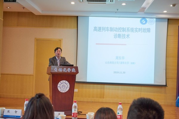 周东华教授做了《高速列车制动控制系统实时故障诊断技术》的大会报告。周教授介绍了高速列车制动控制系统的研究进展,强调高速列车安全运行的关键是列车的信息控制系统,因此故障诊断则是高速列车信息控制系统安全可靠运行的核心技术。他针对目前微小故障、间歇故障、闭环故障、复合故障的诊断问题,详细阐述了相关问题的创新性研究思路和应用验证过程。