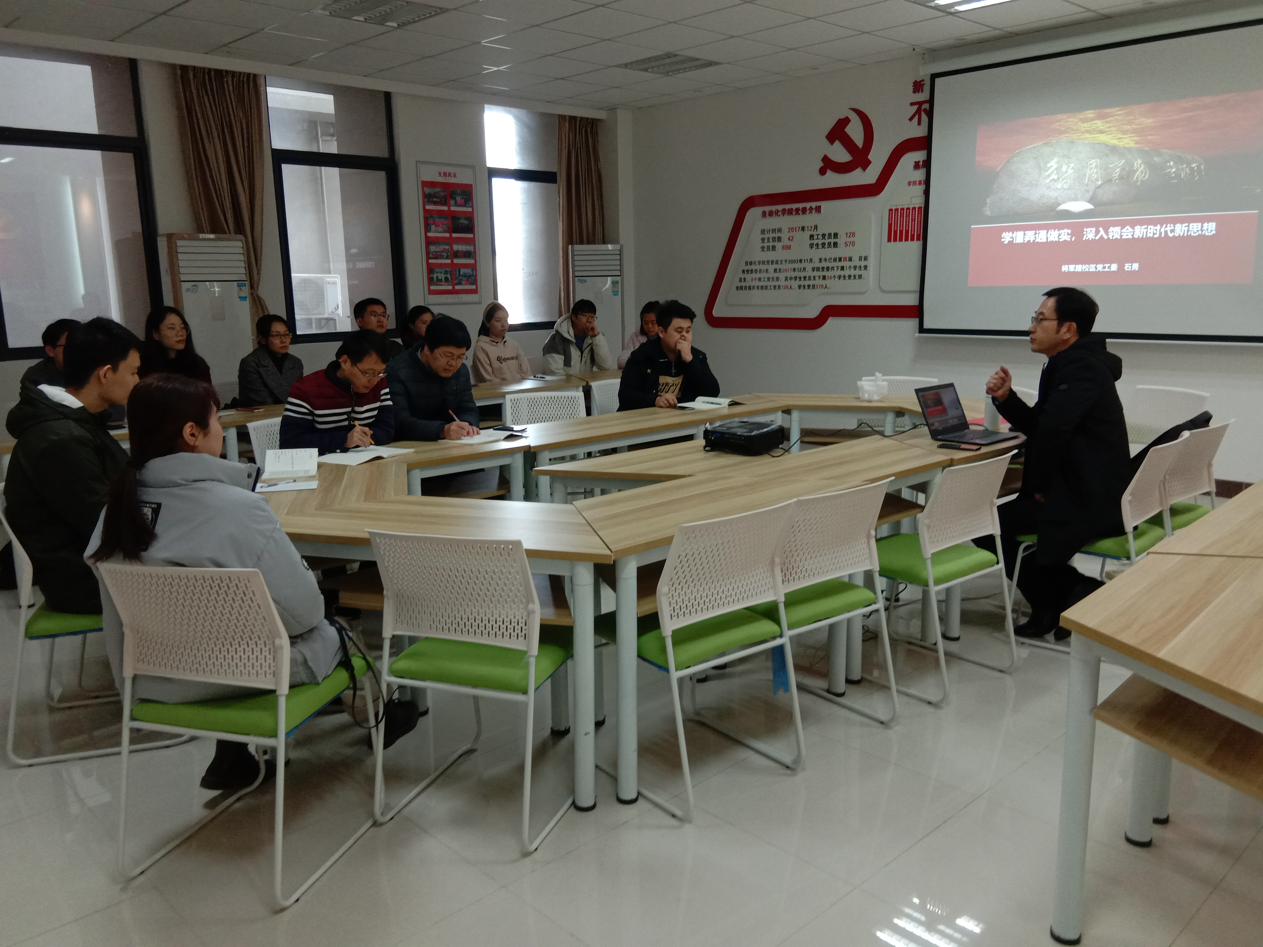 本次活动的主题为学懂弄通做实,深入领会新时代新思想。党的十九大最重大的理论创新、最重要的政治成果、最深远的历史贡献,是确立习近平新时代中国特色社会主义思想为全党必须长期坚持的指导思想。在党课上,石勇书记着重阐释了对习近平新时代中国特色社会主义思想方法论体系的认识与体会,从根本方法、思维方法、工作方法三个层面进行了详细解读,并且联系实际,对支部党员的日常工作和生活都具有很大的启发性与指导意义。