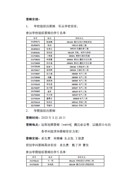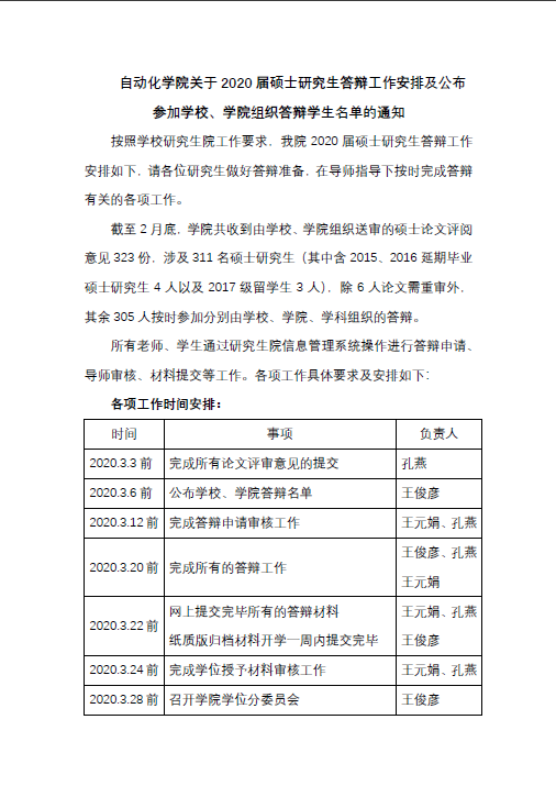 【研究生学位】betway西汉姆联关于2020届硕士研究生答辩工作安排及公布参加学校、学院组织答辩学生名单的通知