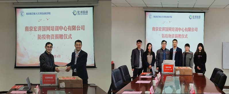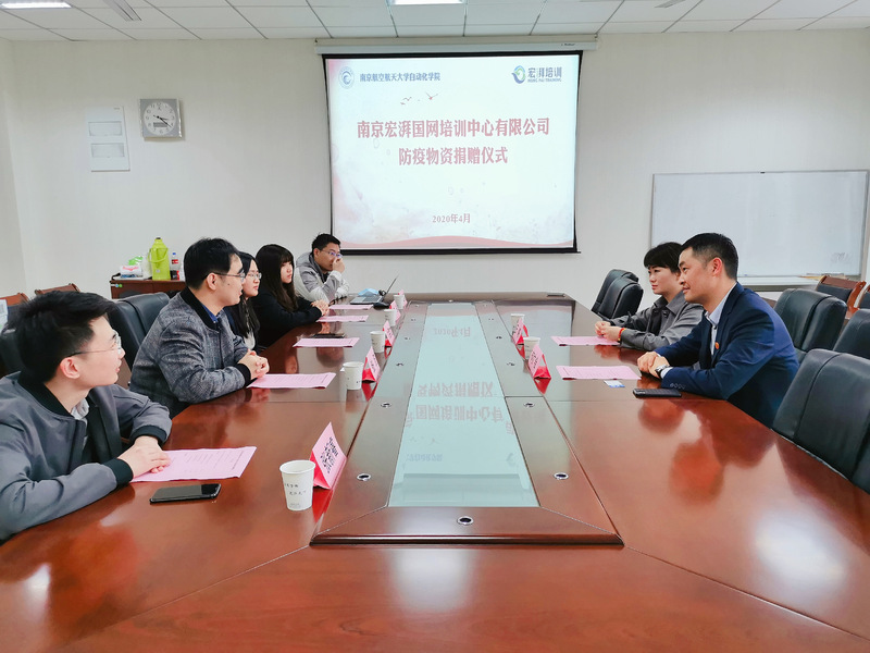 4月16日下午,南京宏湃国网培训中心有限公司防疫物资捐赠仪式在betway西汉姆联1号楼405会议室举行。企业代表何广会、王略,以及我院党委副书记张跃、团委书记刘斐文和各年级辅导员出席此次仪式。