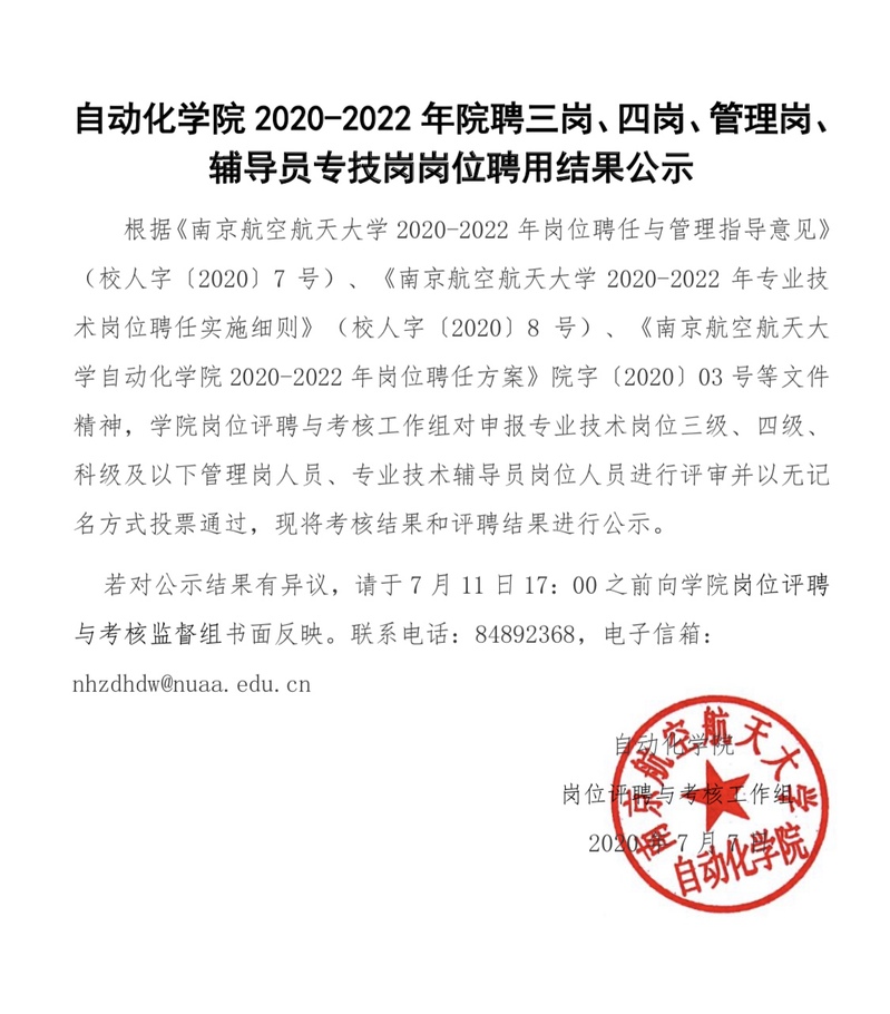 betway西汉姆联2020-2022年院聘三岗、四岗、管理岗、辅导员专技岗岗位聘用结果公示