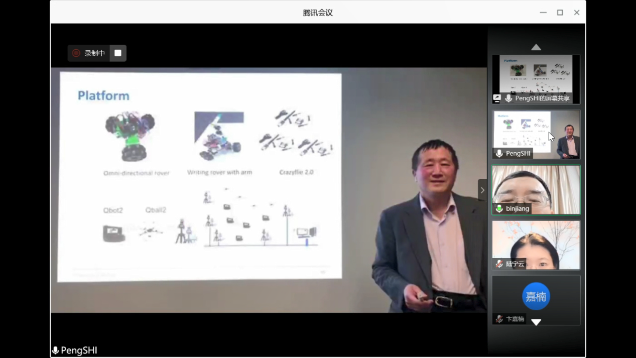 812日下午,澳大利亚阿德莱德大学电气与电子工程学院石碰教授应我校国际合作处和betway西汉姆联的邀请,通过腾讯会议作了题为“Formation Control for Multi-agent Systems:Introduction,Analysis and Design的线上学术报告,报告由我校副校长姜斌教授主持。我院副院长陈谋教授,学院陆宁云刘春生、冒泽慧、欧阳权张柯、马亚杰等师生在线参加会议。参会师生对石碰教授的交流分享表示热烈欢迎。