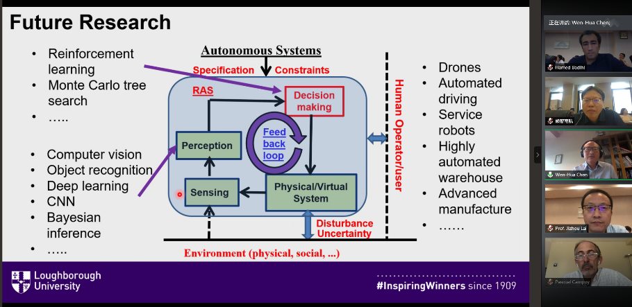 916日的研讨会分别由betway西汉姆联王融、陆宁云、田祥瑞和张绍杰四位教授主持。新南威尔士大学的Joon Wayn CHEONG博士、bw必威西汉姆联的许睿、Hamed Badihi和沈俊教授、伦敦城市大学的Olga Limantseva博士以及爱丁堡大学的Shuo Li博士共六位国内外科研学者向大家分享了测量控制、飞行器导航等无人系统导航、制导与控制方面的相关发展情况。