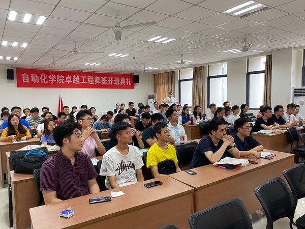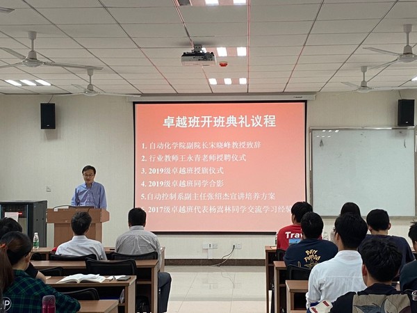 开班典礼首先由宋晓峰副院长简要介绍了国家卓越计划设置和自动化卓越班的建设情况,通过历届卓越班统计数据,勉励19级卓越班同学在卓越班有更好的发展,取得更好的成绩。