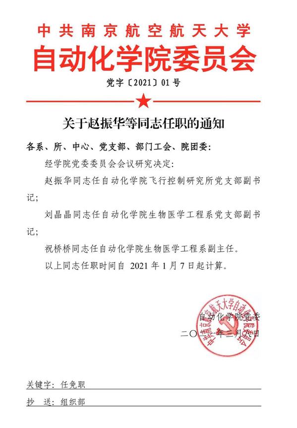 关于赵振华等同志任职的通知