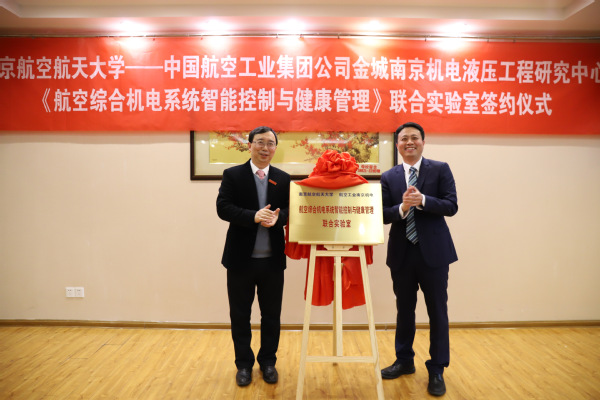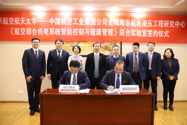 3月17日,我校与中国航空工业集团公司金城南京机电液压工程研究中心(以下简称航空工业南京机电)在将军路校区betway西汉姆联举行“航空综合机电系统智能控制与健康管理”联合实验室的签约仪式。航空工业南京机电副总经理、总工程师陈丽君,人力资源部部长王海波,液压与作动系统部部长葛益波,环控系统部部长杨昌宝;我校副校长姜斌,发展联络部部长兼党政办副主任李君,bw必威院副院长顾冬冬,betway西汉姆联党委书记李文雷,betway西汉姆联院长江驹及校企双方有关负责同志出席签约仪式。江驹和陈丽君分别代表双方签署联合实验室协议;姜斌和陈丽君为联合实验室揭牌。李文雷主持签约仪式。