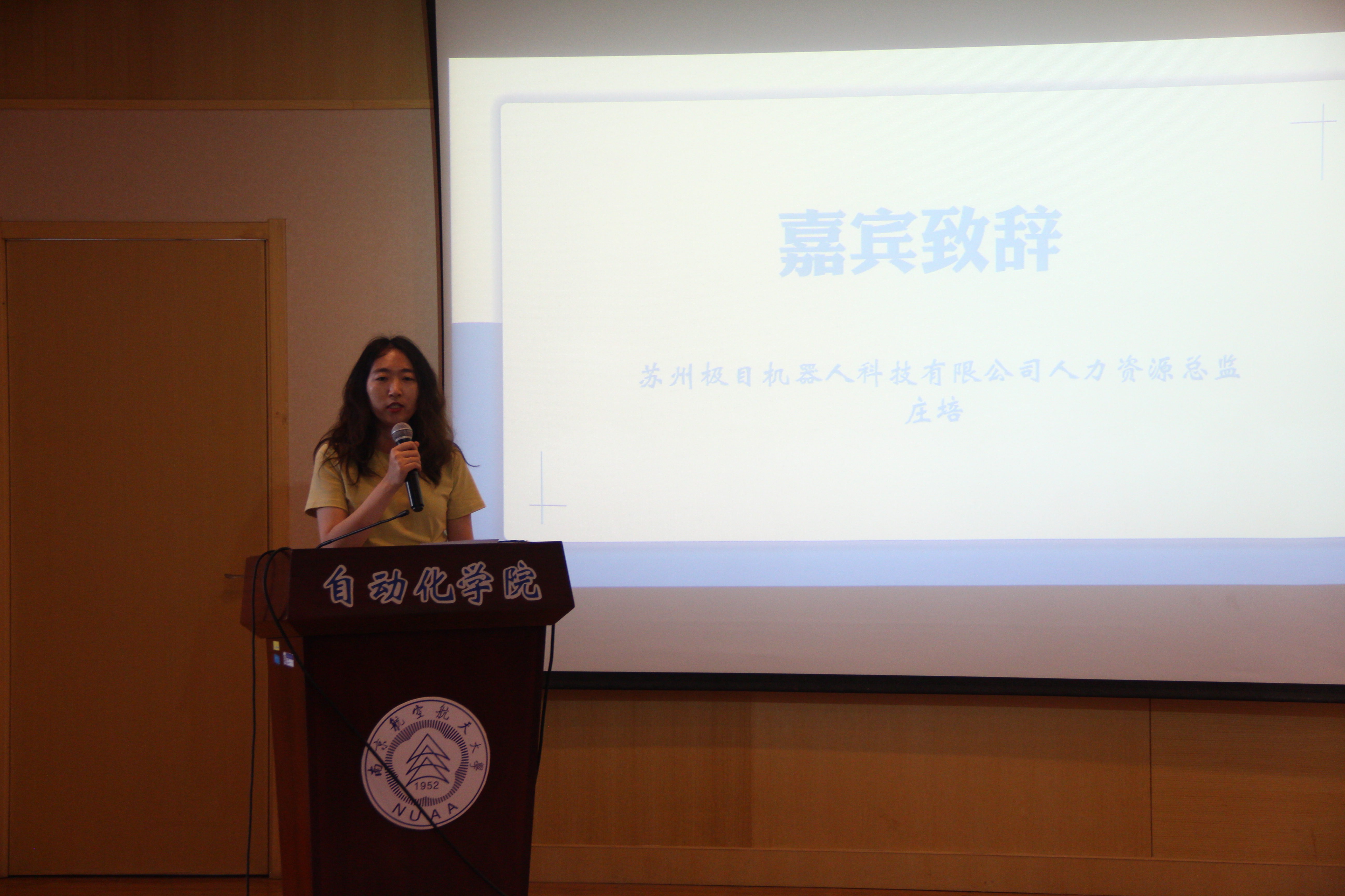 闭幕式上,极目机器人人力资源总监庄培致辞。她介绍了极目机器人公司的基本情况,并对与南航一直以来校企合作表示感谢。她表示, 南航作为江苏省重要的建设人才和科研基地,为社会培养了数以万计的人才,为区域经济社会发展做出了应有的贡献。尤其是南航的相关专业,与极目公司产品密切贴合,实现与南航的产教研合作,共谋发展,是公司酝酿已久的举措。