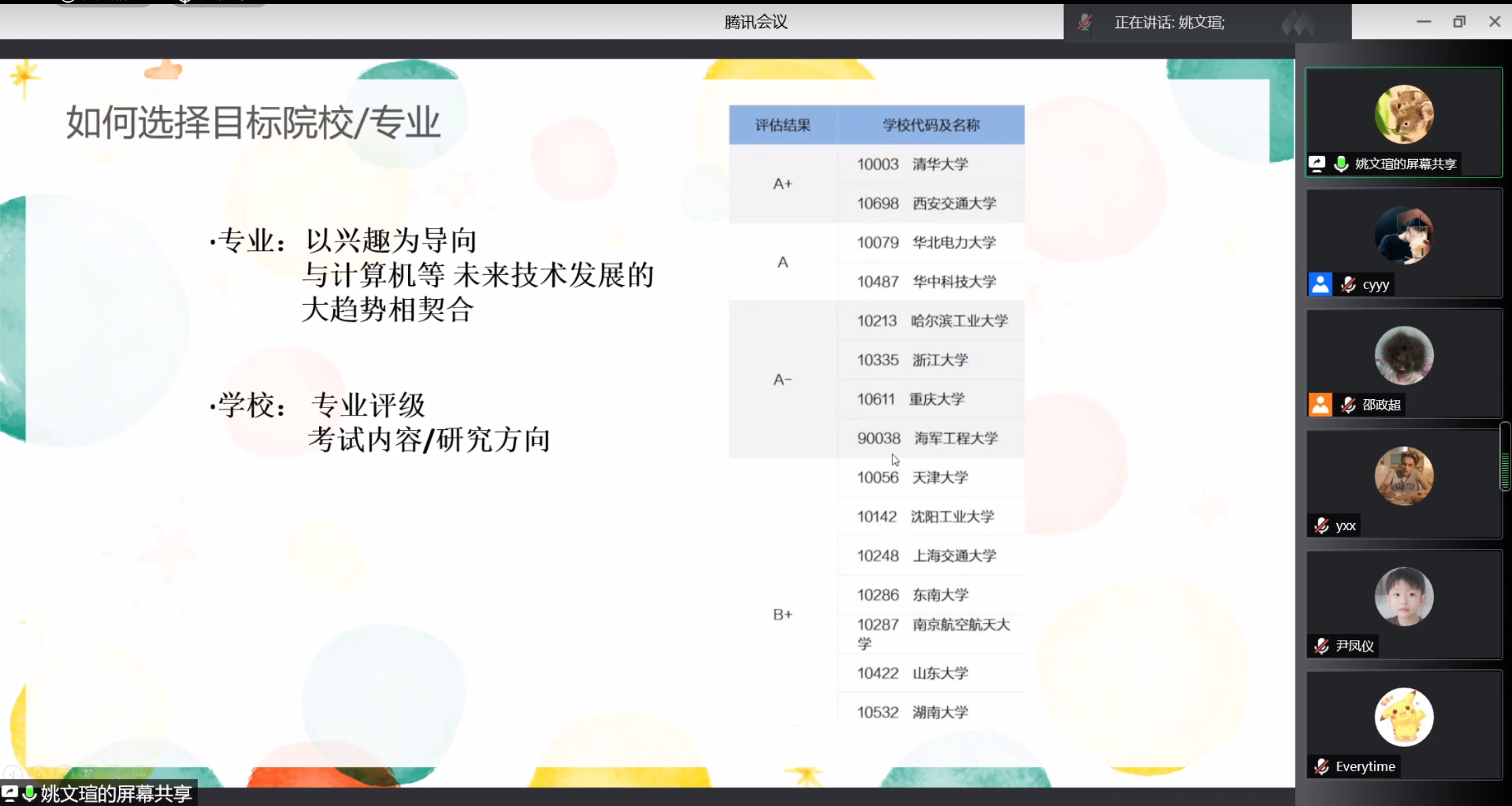 跨专业考研到华东师范大学的姚文瑄在分享会中也与同学们交流自己转专业的心路历程,同时就跨专业考研的重点,如择校、专业课复习等为大家进行了详细的介绍,在考研的时候也需要平衡学业,这些都为想要跨专业考研的同学提供了非常宝贵的经验。