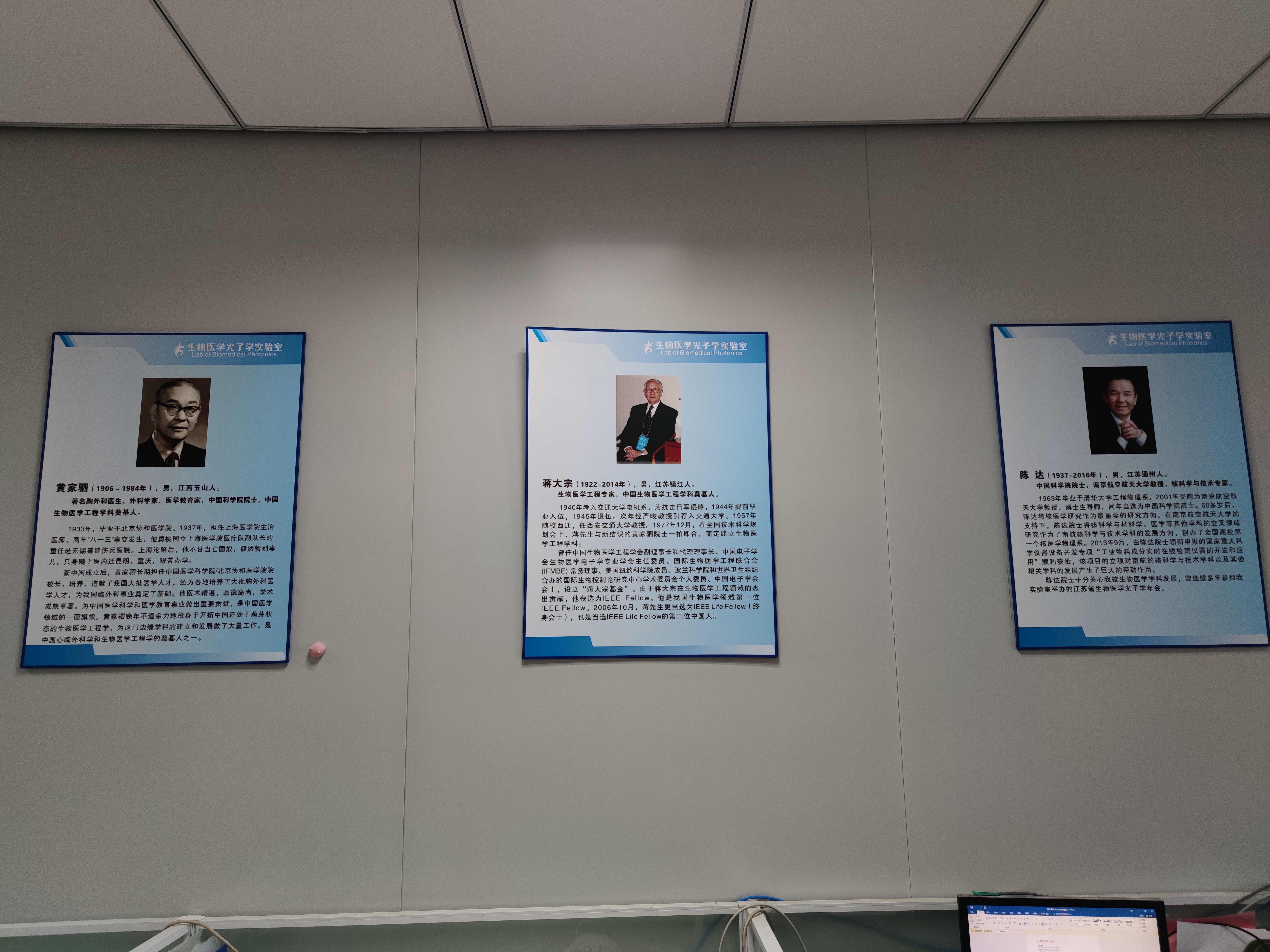 团队拥有独特的文化氛围,构建了师法先贤、求真务实、迎难而上,敢为人先的团队精神。在工作室悬挂我国生物医学工程学开创人黄家驷院士和蒋大宗教授、我校核医学开创人陈达院士、我校自主培养的第一位院士陶宝琪教授等前辈科学家肖像。钱志余教授为团队分享了在陶宝琪院士指导下攻读博士学位的历程,号召大家向以陶宝琪院士为代表的老一辈科学家学习,三省吾身,日新月异。团队出台了一系列切实可行的规章制度和管理办法,汇编成册,起到奖励先进、调动落后的作用。同时对实验室网站、展示长廊进行定期更新,努力向世界一流实验室靠齐。