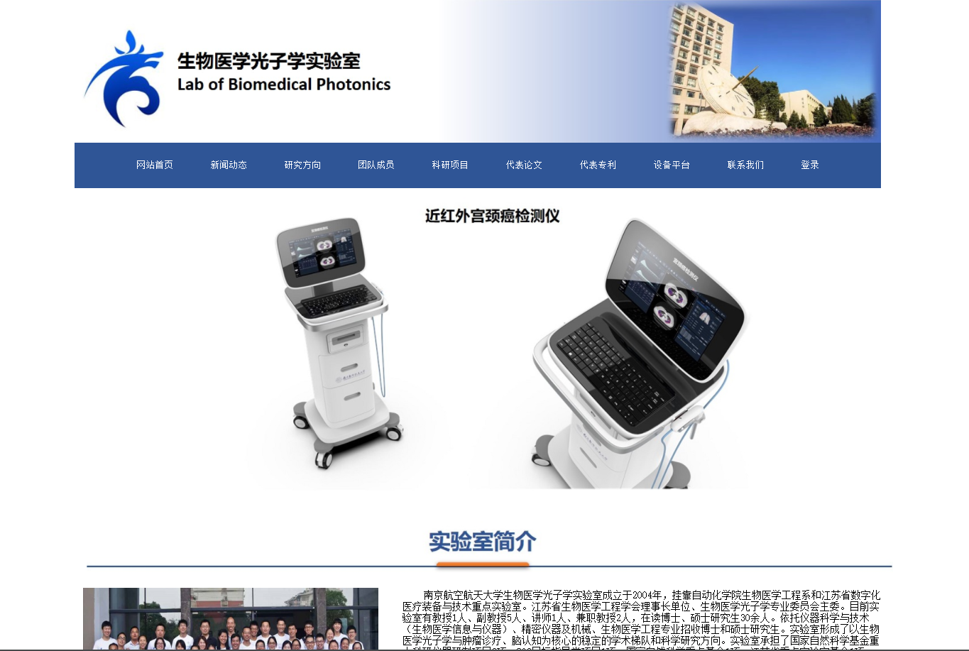 bw必威西汉姆联生物医学光子学医工结合团队成立于2004年,挂靠betway西汉姆联生物医学工程系和江苏省数字化医疗装备与技术重点实验室,是国家视觉与听觉健康产业技术创新联盟副理事长单位、江苏省生物医学工程学会理事长单位。汇聚了以钱志余教授为主导师的一大批国内生物医学工程科学领域专家和中青年拔尖人才,现有教授1人、副教授6人、讲师1人、博士后2人、兼职教授2人,在读博/硕士近40人。实验室形成了以生物医学光子学、肿瘤精准治疗、脑认知功能研究及生物医学仪器研发为核心的学术梯队和科研方向。实验室与国内著名科研队伍建立了长期合作的关系,主要包括:湖南省肿瘤医院(微波消融)、中科院深圳先进技术研究院(医疗器械)、深圳大学(生物光学)、东南大学中大医院、南京军区总医院医学影像科(fMRI/PET/XCT)、中国药科大学(药效研究)、南京市脑科医院(脑功能认知)、厦门大学(光声成像平台)、南京鼓楼医院(颅脑损伤)。同时,本实验室与国内外生物医学光子学实验室建立了广泛的联系和合作。