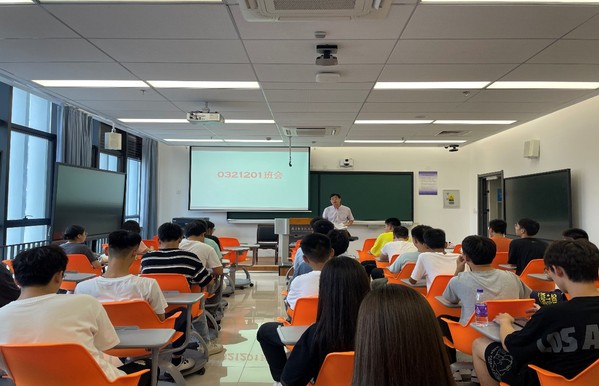 王院长指出大学班级是促进大学生全面发展的重要载体,班级负责人要善于挖掘班级中的积极分子,以增强班级凝聚力为导向,构建团结协作、积极向上的班集体。针对班风建设,他先对往届电气系学生学习成绩和考研保研情况进行介绍,激发起学生学习的内在动力,接着又强调良好的班风对学生良好学习习惯的养成和自身成长的深远影响。他鼓励同学们积极参与实践活动和科创比赛,培养吃苦耐劳精神,提高分析和解决问题的能力。
