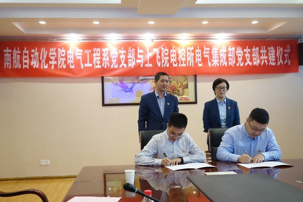 在李忆书记和李文雷书记的指导下,举行了简洁的校企党支部结对共建签约仪式。由betway西汉姆联电气工程系党支部书记陈杰与上飞院电气集成部党支部副书记兼副部长姬昌睿代表双方单位签署协议。