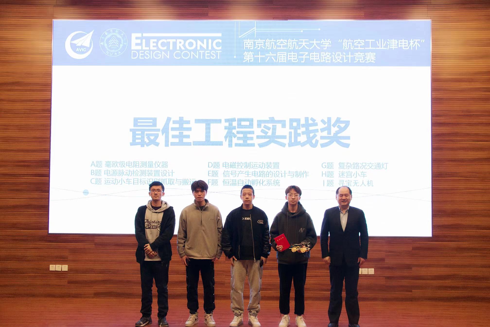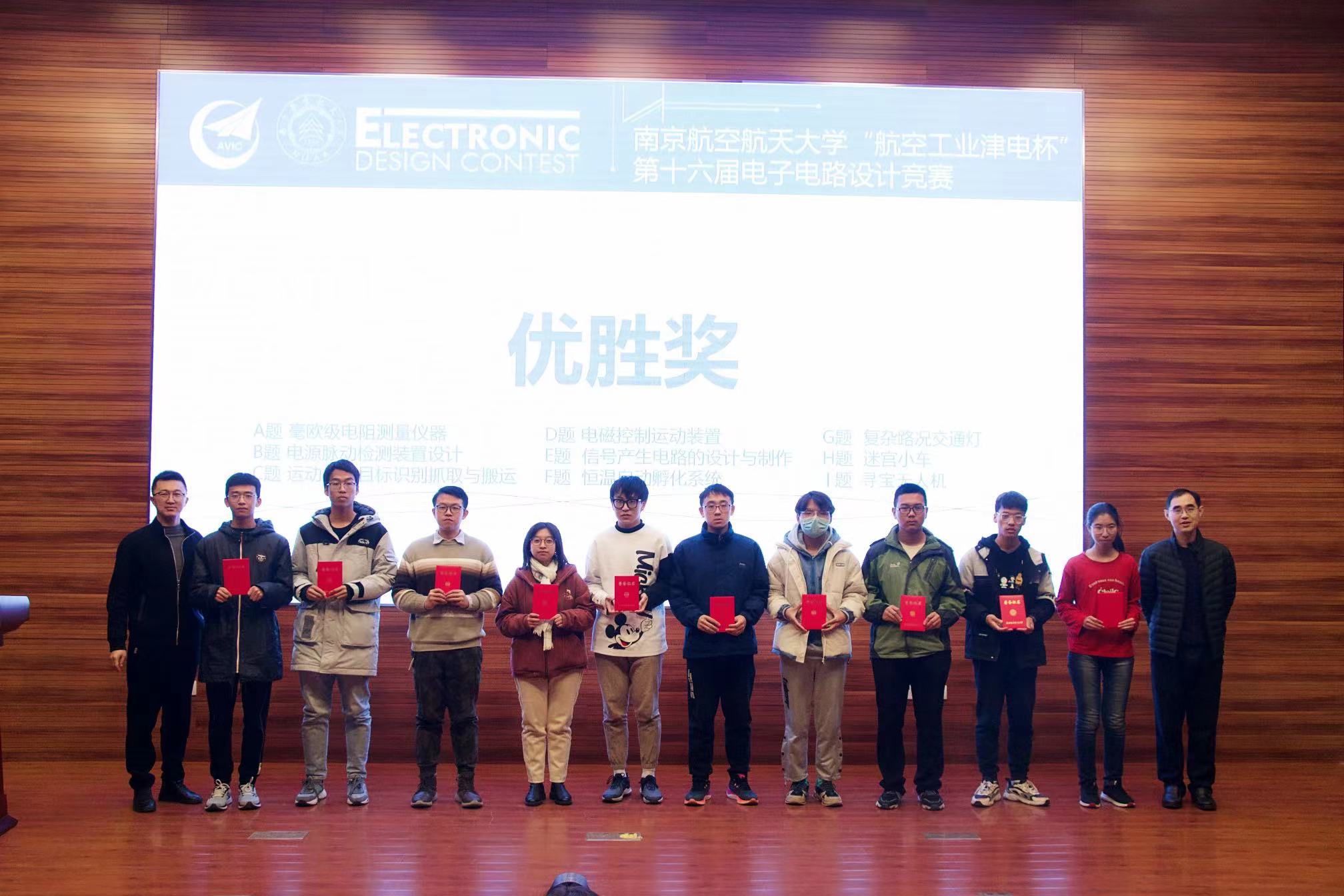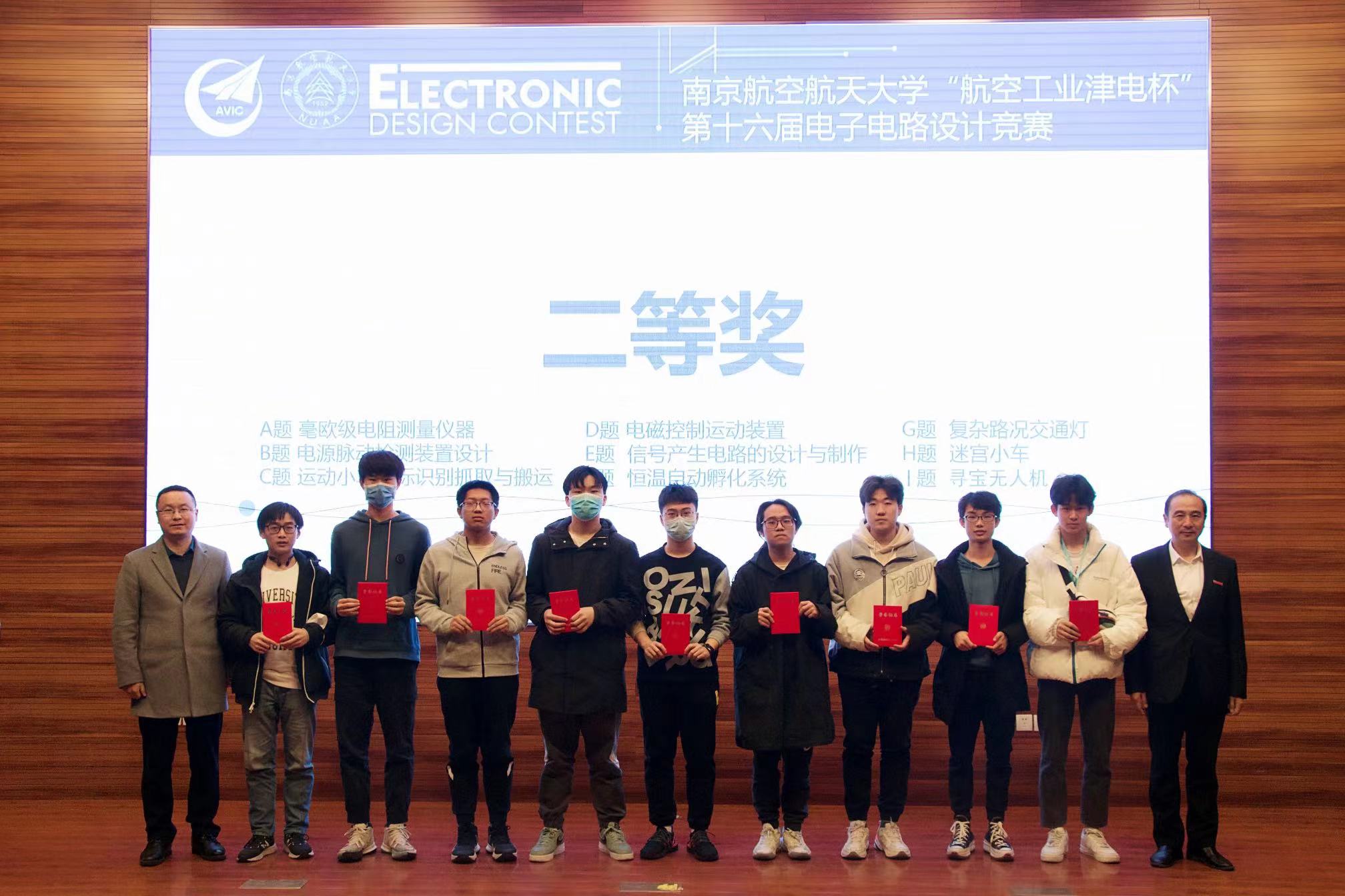 本届竞赛共评出特等奖1项,一等奖13项,二等奖28项,优胜奖20项,最佳工程实践奖1项和最佳工程创意奖1项。在场的嘉宾和评委为获奖同学颁发了获奖证书。在热烈的掌声中,“航空工业津电杯”第十六届电子电路设计竞赛圆满落下帷幕。