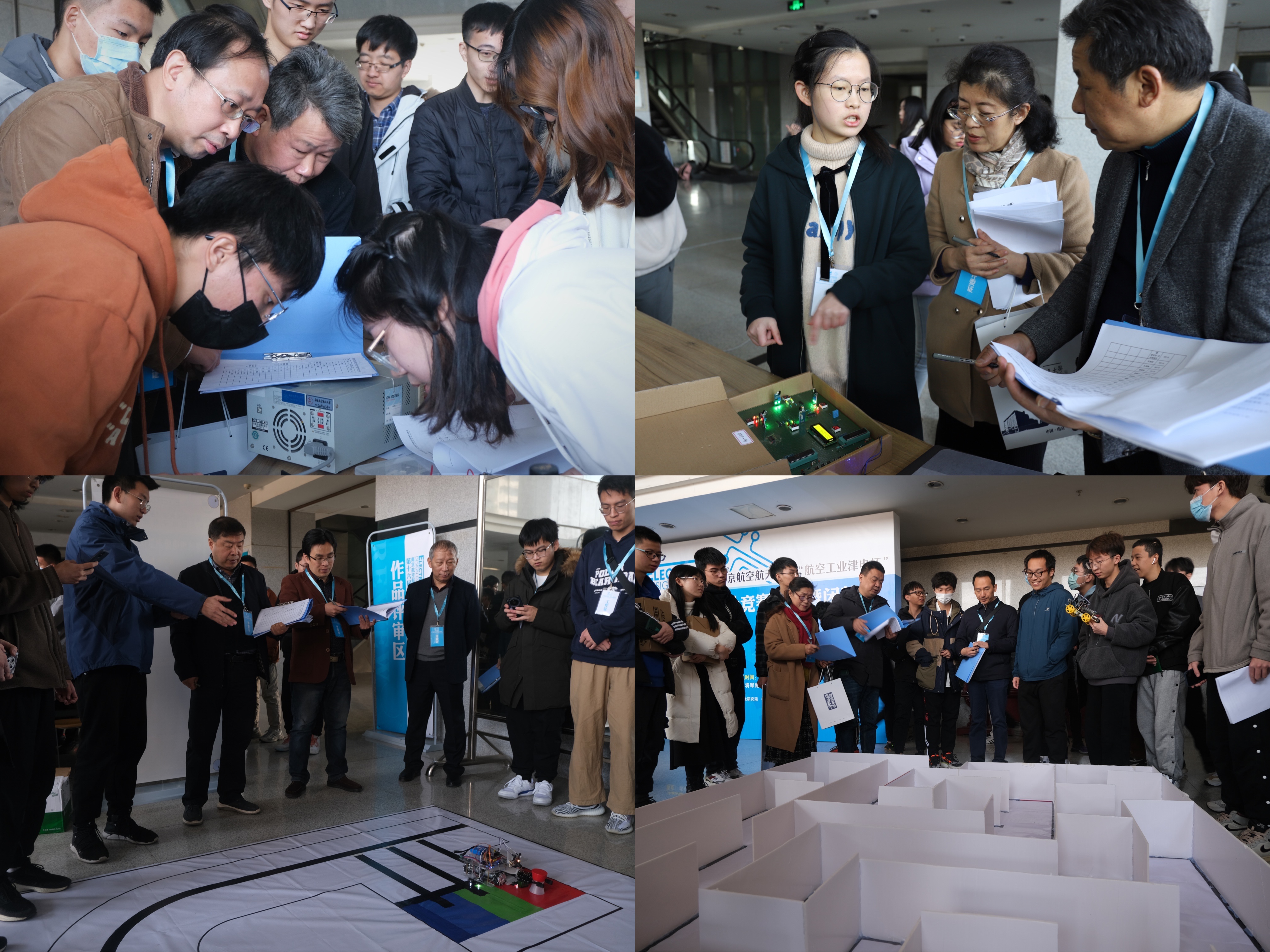 决赛于一号楼大厅开始。本场决赛邀请了解放军陆军工程大学潘克修教授等6位校外专家和9位校内专家组成评委团。决赛现场,评委们从多个角度对各参赛作品进行评判和打分,与选手们交流并提出诚恳建议。