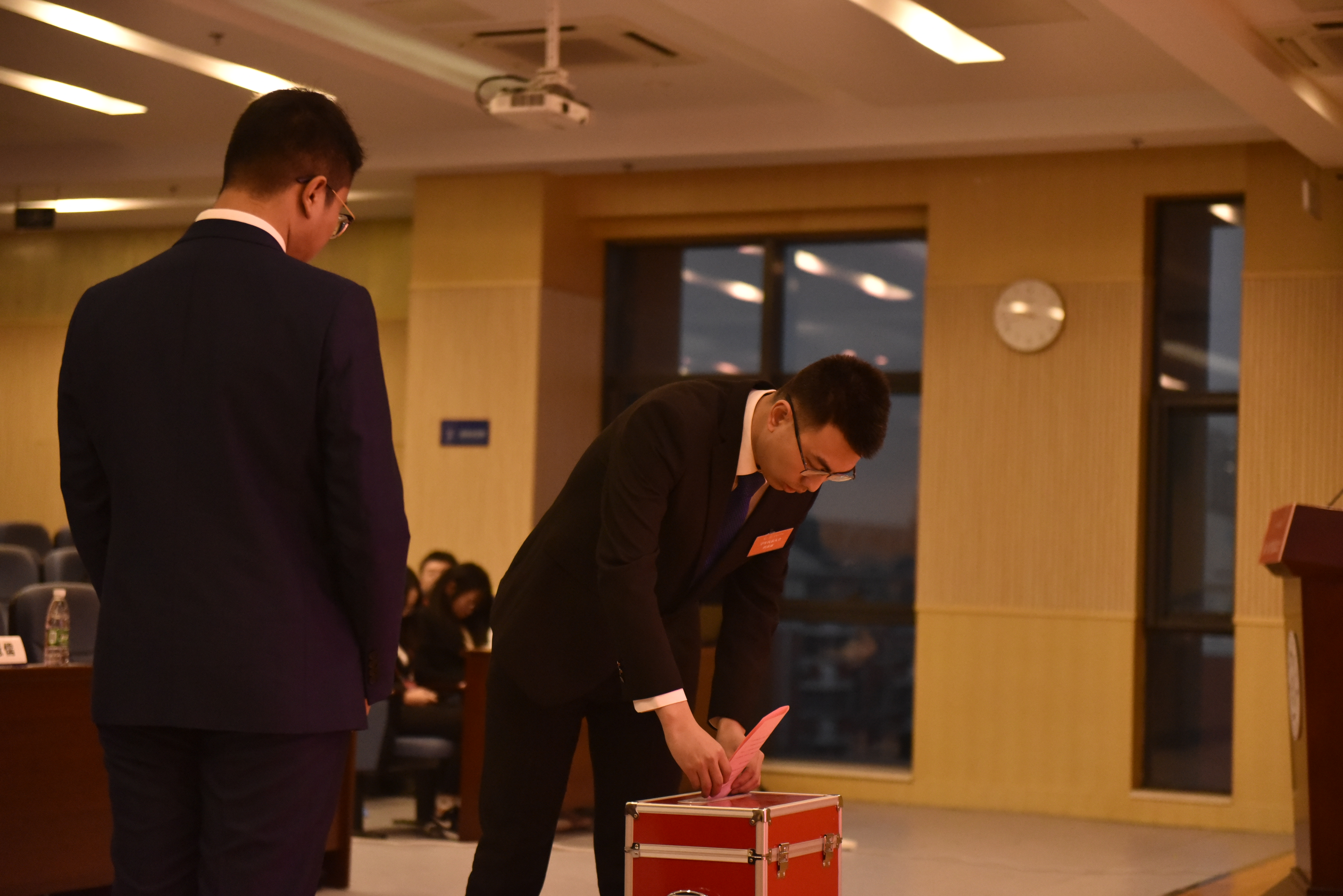 裴国蓉、罗统分别代表本次学生会、研究生会筹备委员会作提案工作报告。本次学代会、研代会收到了代表提案39件,涉及公共服务、教学管理等五个方面,较为全面真实的反映了我院同学的意见建议。提案工作的认真推进也是学生会、研会全心全意服务同学,担当师生联系桥梁的良好体现,对学院和学校的发展建设具有重要意义。