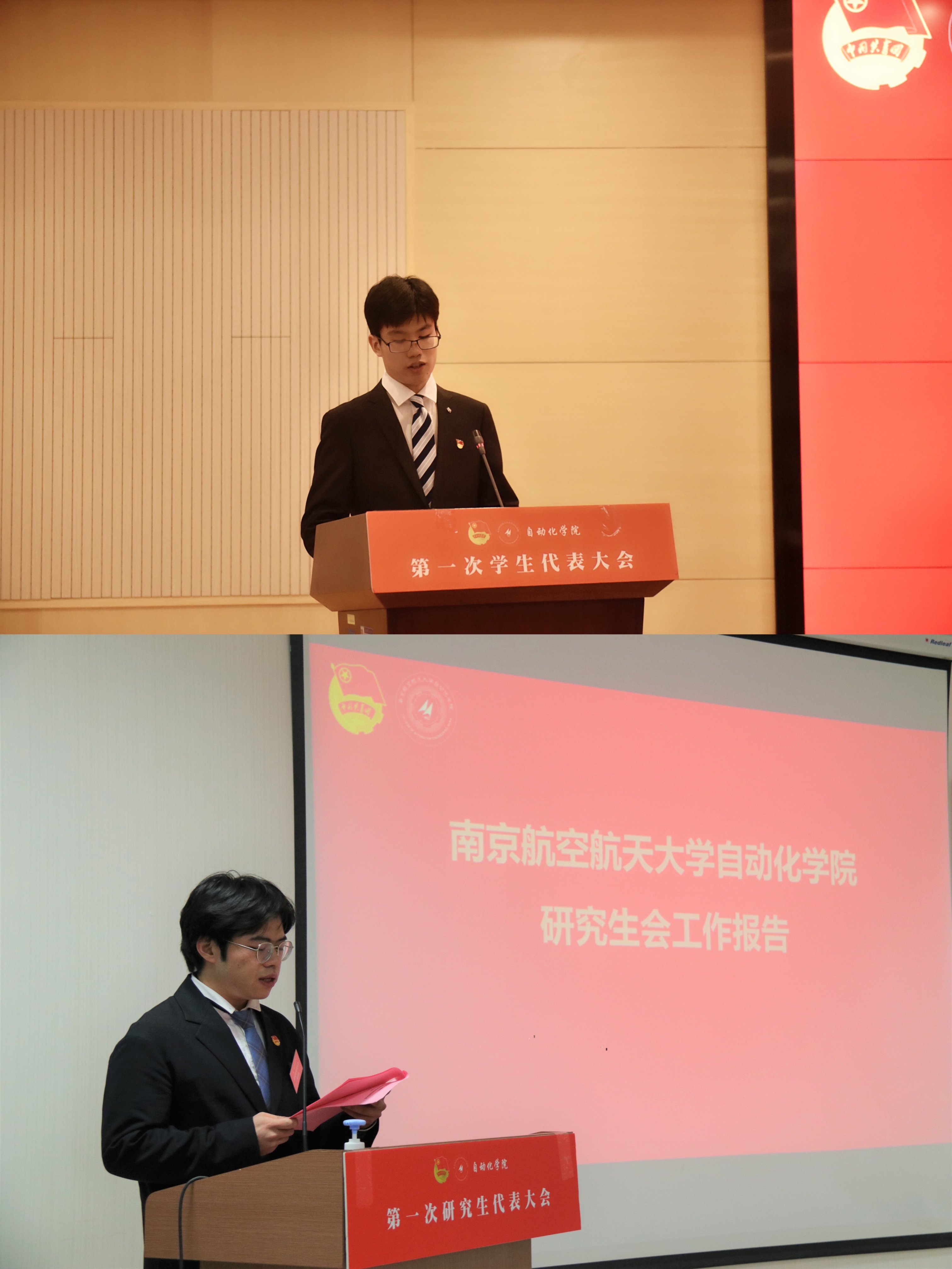 正式会议上,宋昱锋和刘路分别代表上一届学院学生会、院研究生会向代表们汇报了一年来学生会及研会的工作。