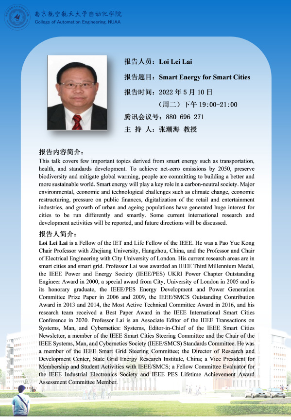 【学术报告】Smart Energy for Smart Cities
