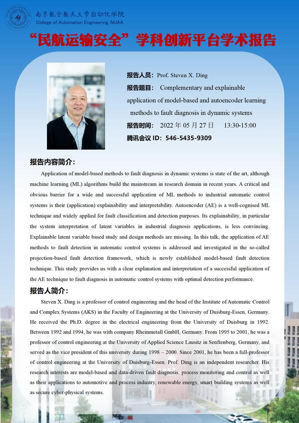 【学术报告】Complementary and explainable application of model-based and autoencoder learning methods to fault diagnosis in dynamic systems