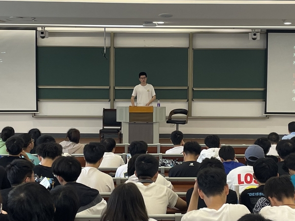 会后,学生主动留下与主讲老师、学生进行沟通提问,两位主讲人耐心回答了同学们关于课程安排、保研就业等相关问题,现场互动活跃。